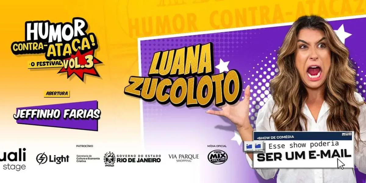 Na sequência, Luana Zucoloto assumiu o palco com “Esse Show Poderia Ser um E-mail” e confirmou por que é hoje um dos nomes mais carismáticos e afiados do humor nacional. Dona de uma presença magnética, o espetáculo se constrói como uma espécie de apresentação corporativa, com direito a projeções, estrutura quase didática e uma condução que lembra, de propósito, aquelas palestras inevitáveis do mundo empresarial. A diferença é que, aqui, cada slide vira combustível para o riso e para uma identificação imediata: basta já ter participado de uma reunião longa demais para se reconhecer nas situações propostas.